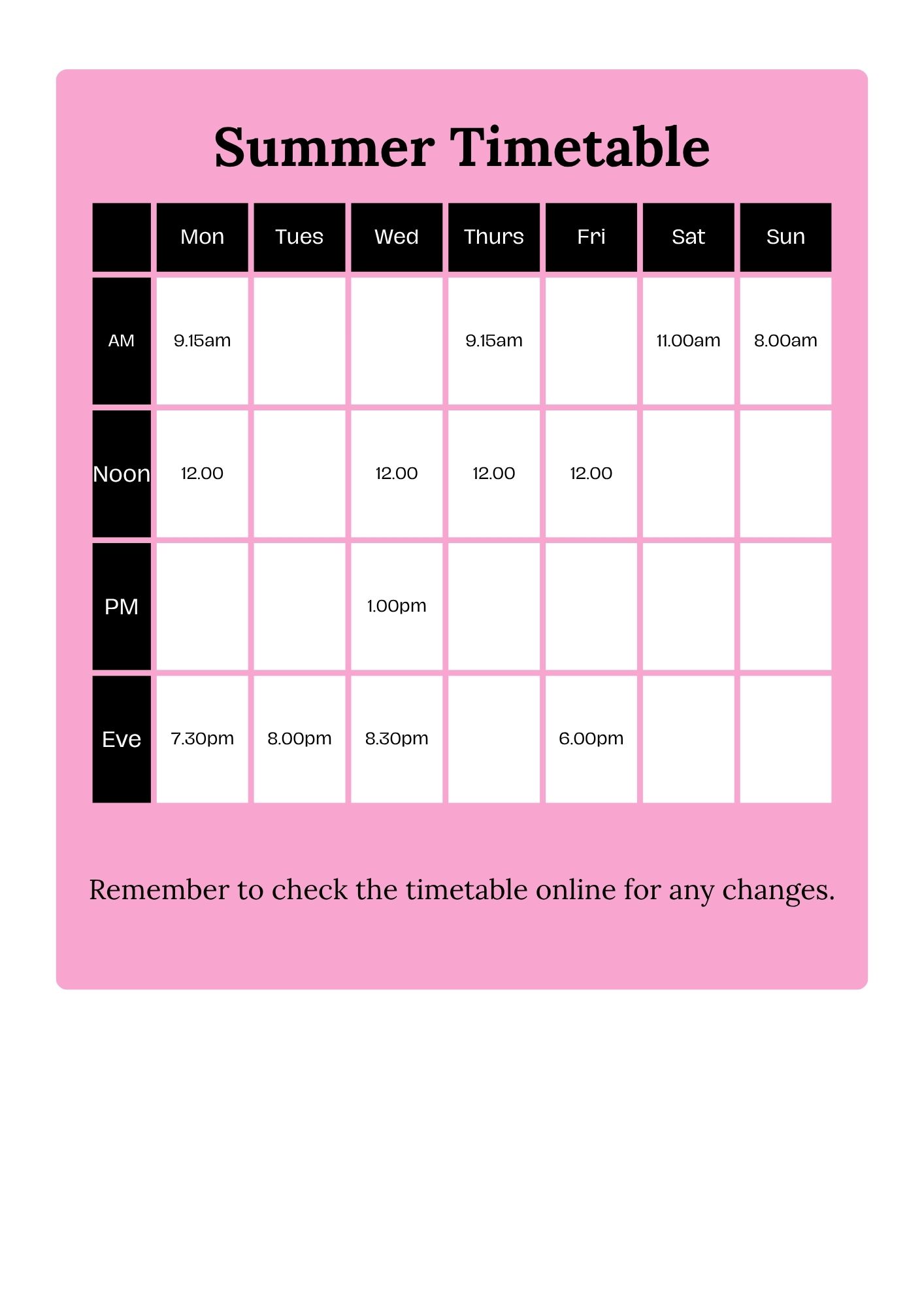Our Summer Term Timetable is now available to view. You can book classes up to 1 month in advance.